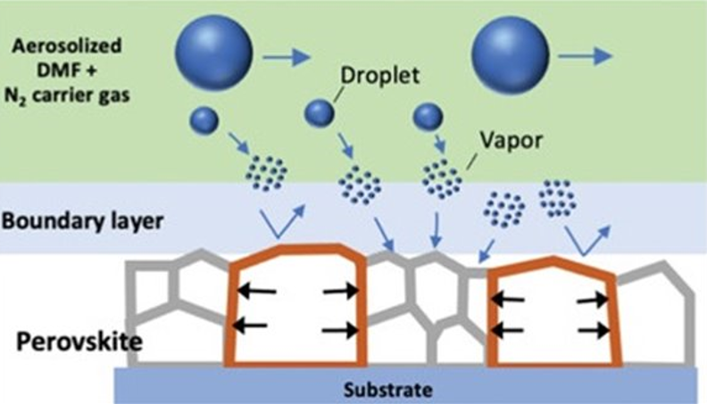 AeroSolar was spun out in 2022 by Prof Joe Briscoe to address these challenges. It has developed a unique process for the post-treatment of halide perovskite semiconductors for PVs. It uses solvent and solution aerosols that are controllably passed over the surface of a perovskite film leading to recrystallisation and substantial increase in the material quality and therefore PV efficiency, particularly at large areas. AeroSolar is working with commercial perovskite PV manufacturers to improve the performance of the solar cells and therefore add value to their products